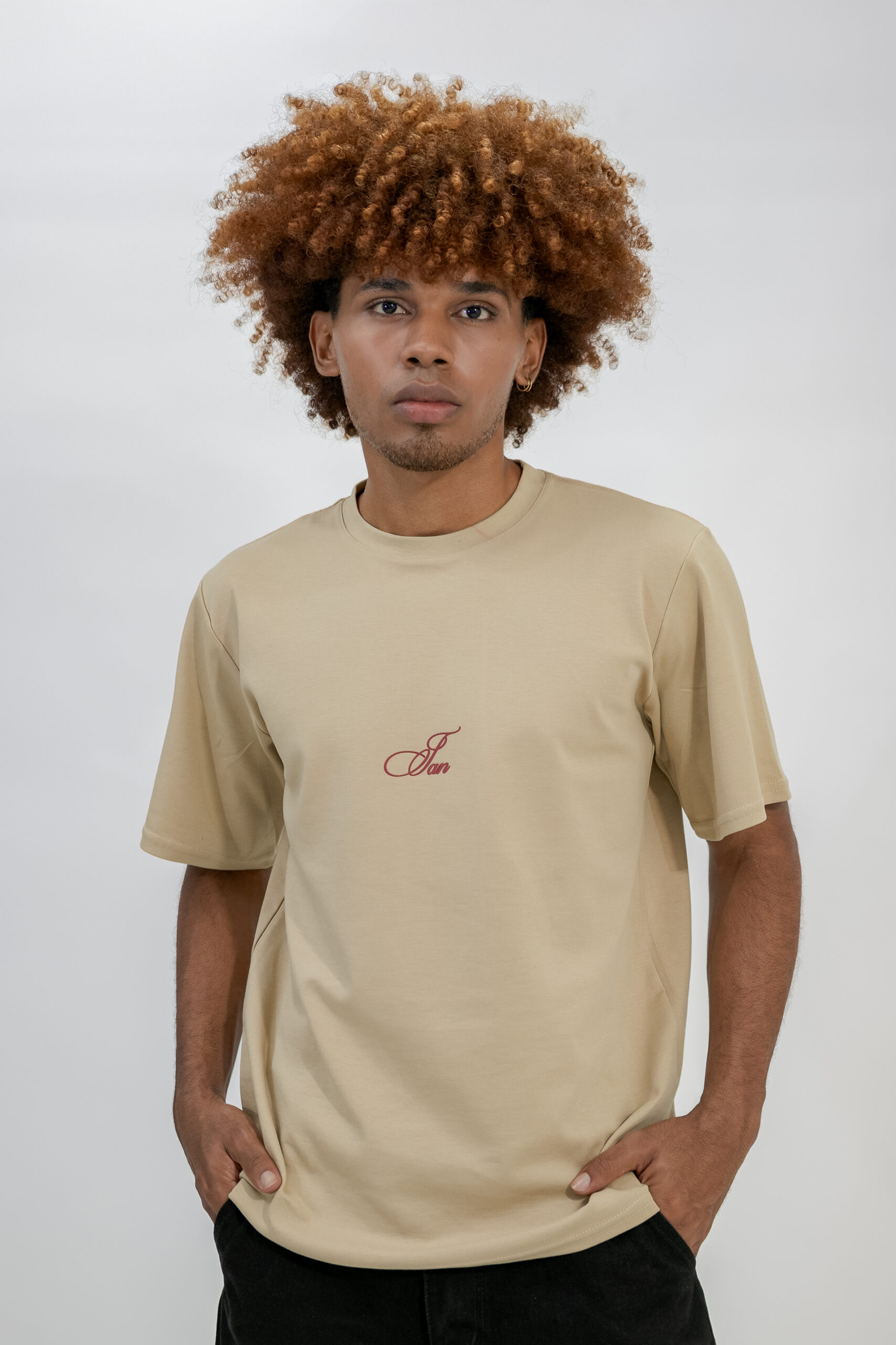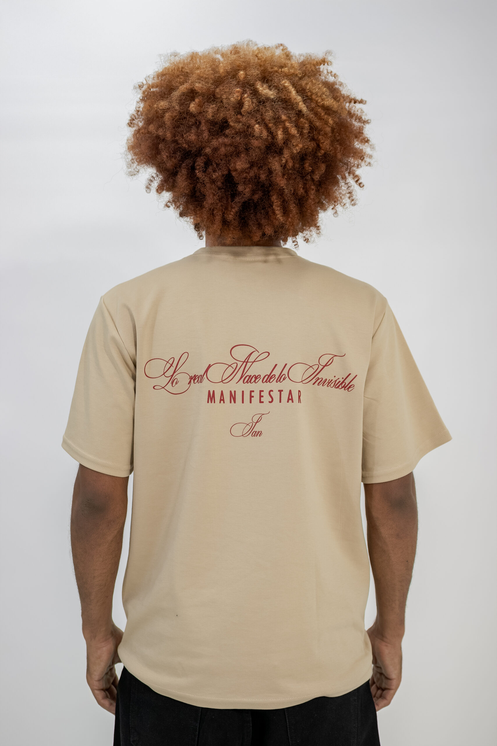 Camisa oversize en alto gramaje con aplicación de texto en serigrafía.