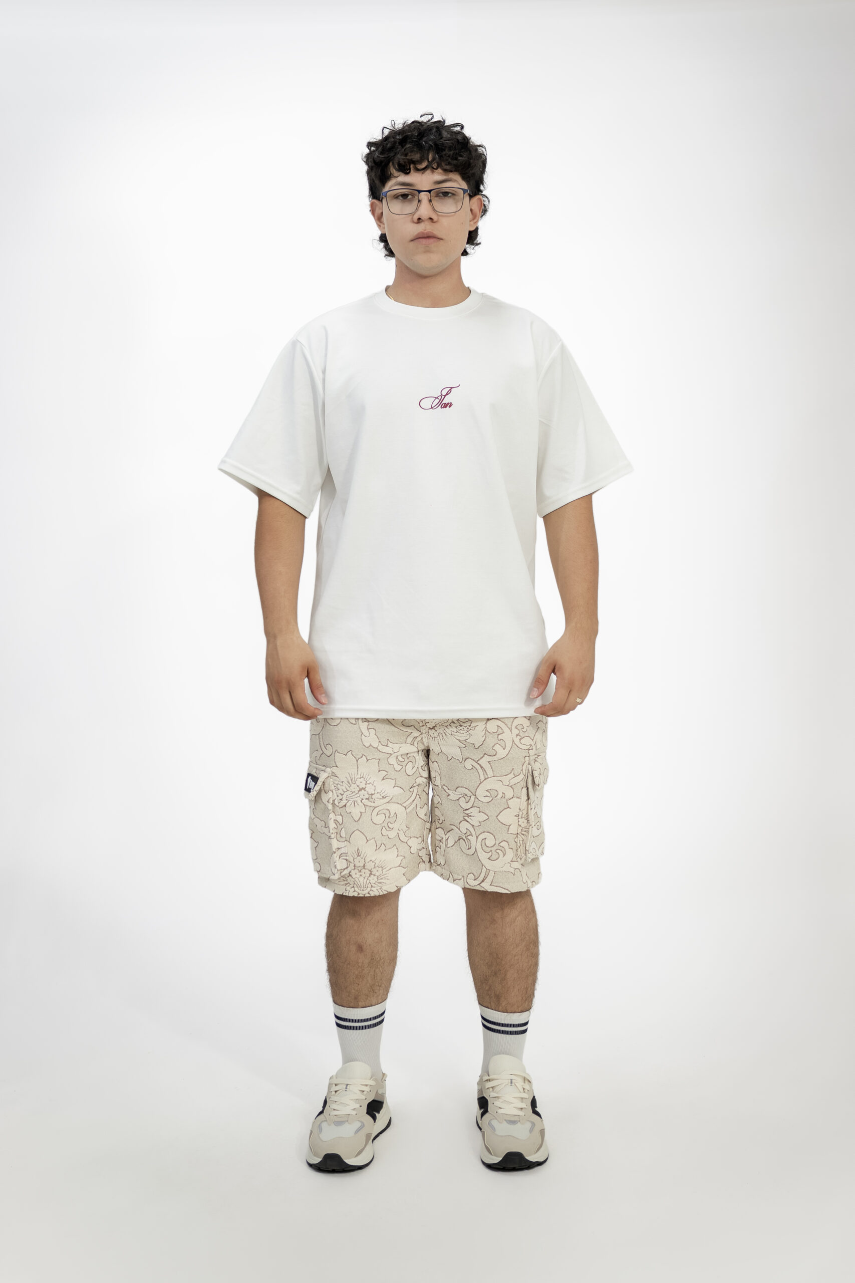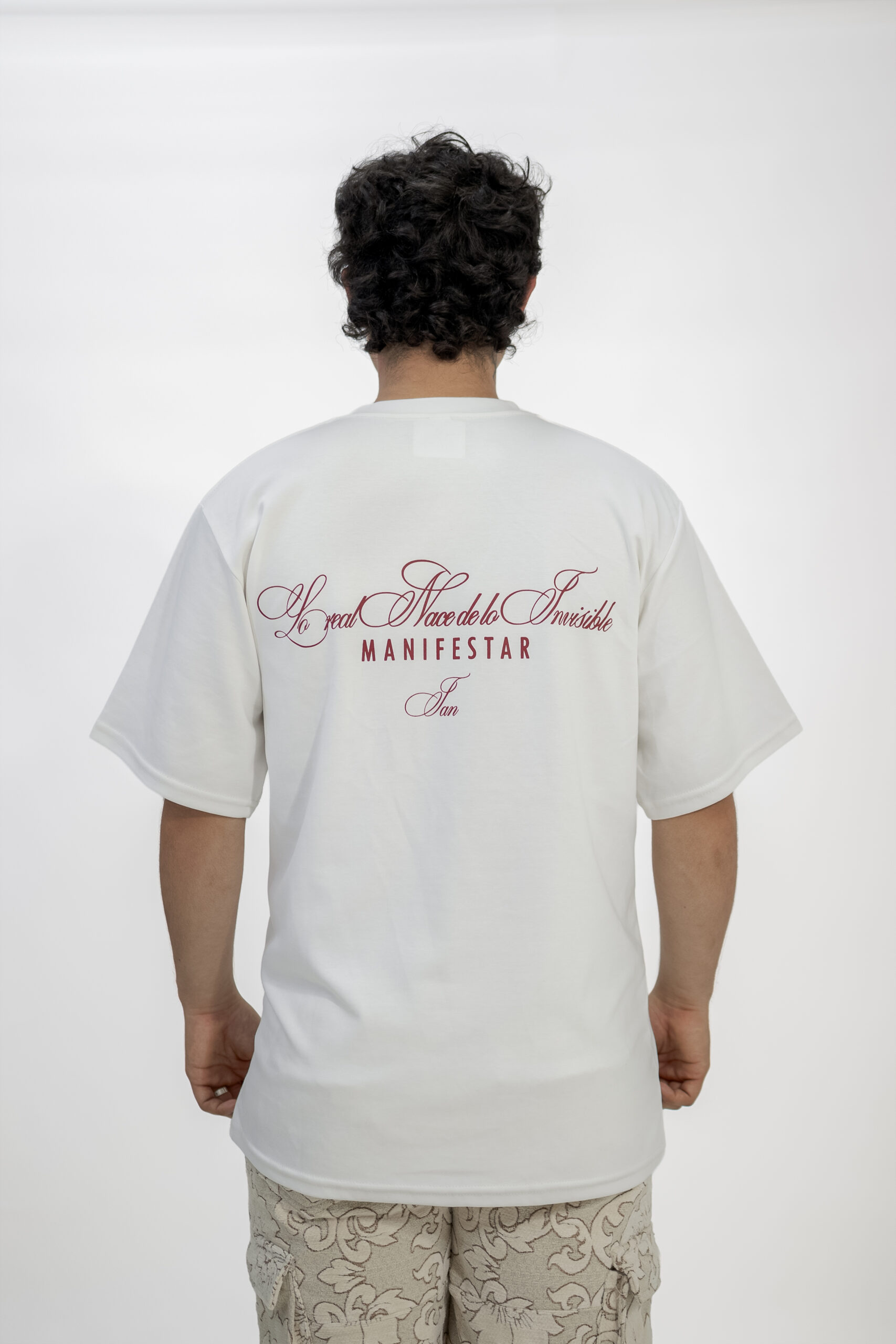 Camiseta oversize con alto gramaje y aplicación de texto en serigrafia